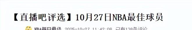直播吧(【直播吧評選】10月27日NBA最佳球員2025.10.27)