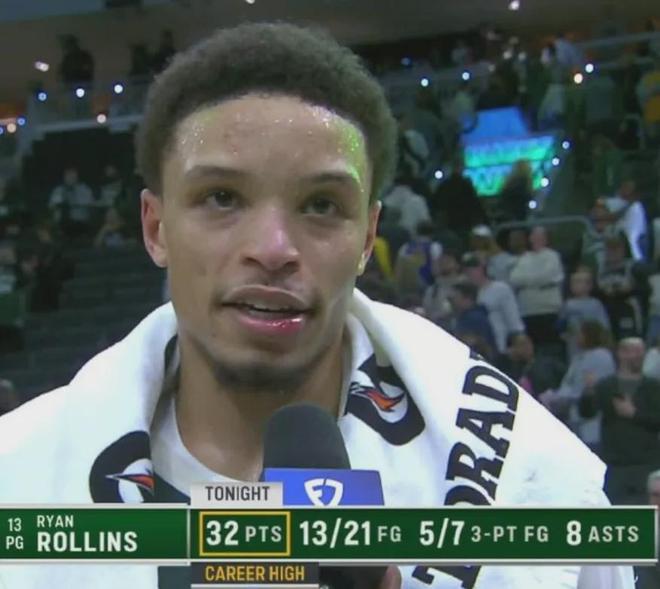 羅林斯是頭號(hào)進(jìn)攻點(diǎn),他單場(chǎng)21投13中,轟下32分3籃板8助攻的數(shù)據(jù),幫助球隊(duì)力克強(qiáng)敵。