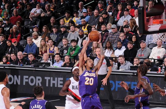 尼克·史密斯在第二節(jié)中段重新上場,他連續(xù)兩次助攻八村壘得分,然后自己終于迎來了得分機會,他突破上籃得分,隨后他連進兩記三分球,幫助湖人追分。湖人半場52比53落后開拓者1分。